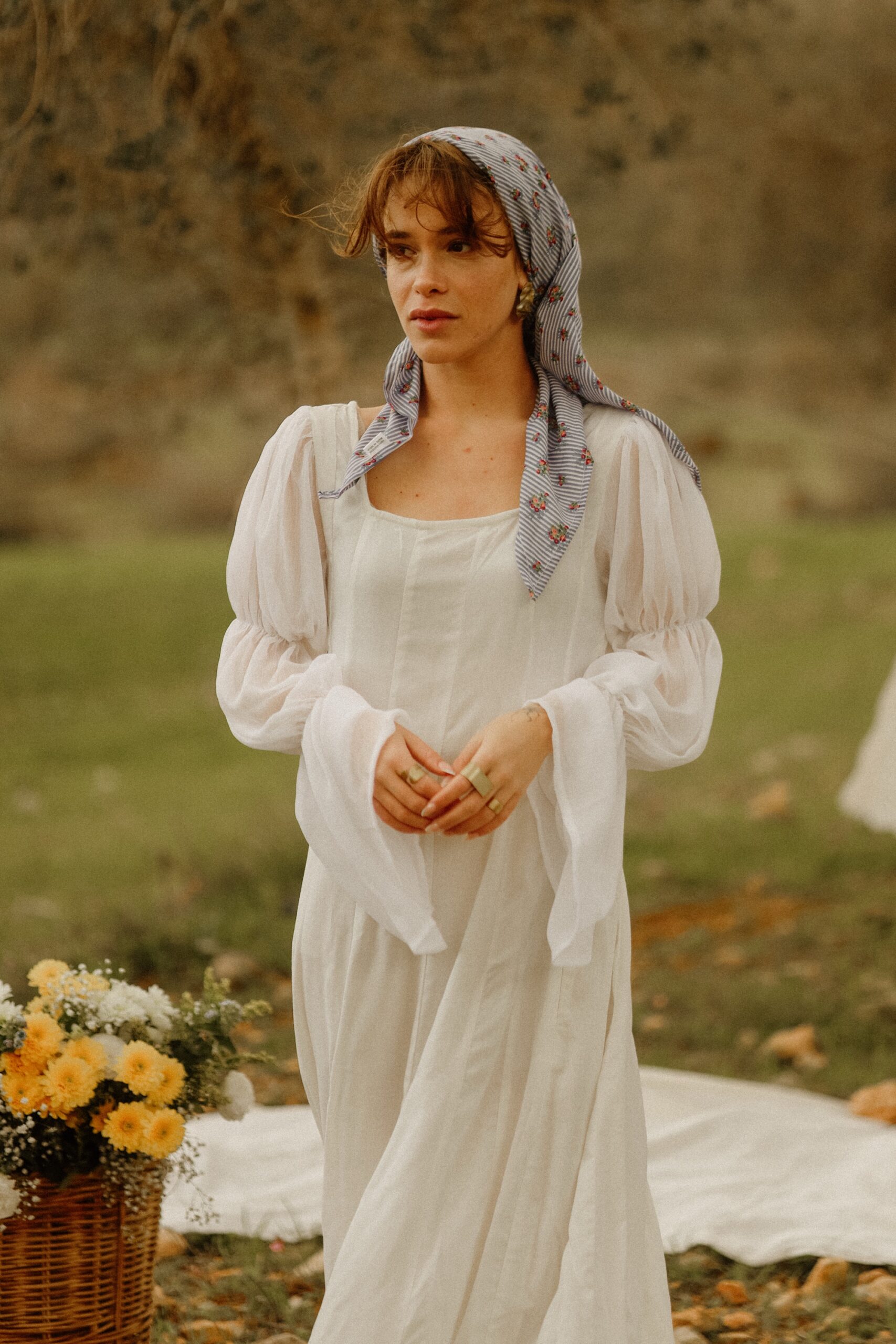 בנדנה מבד פוליאסטר, פסי תכלת עם פרחים וסרט החלקה מובנה