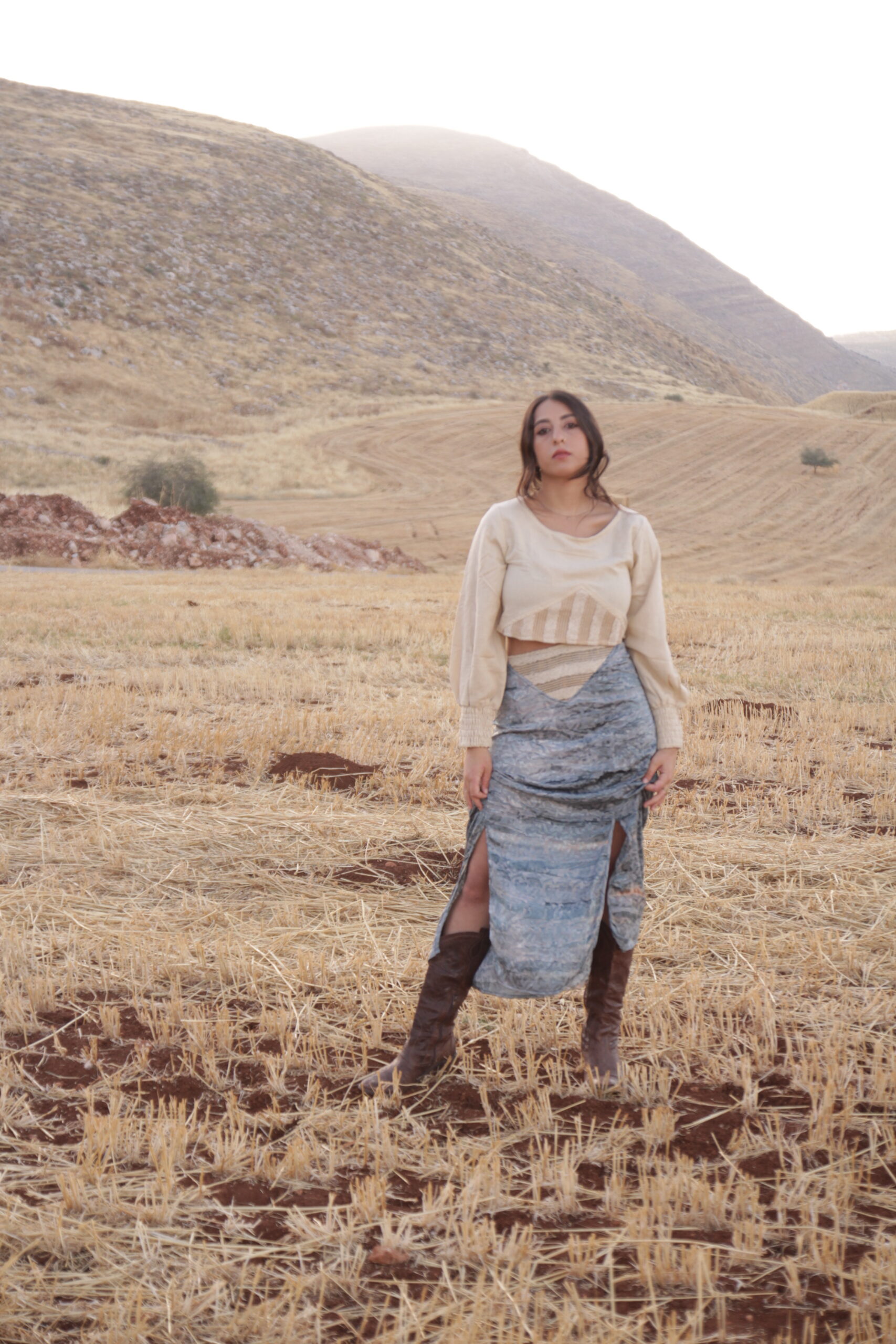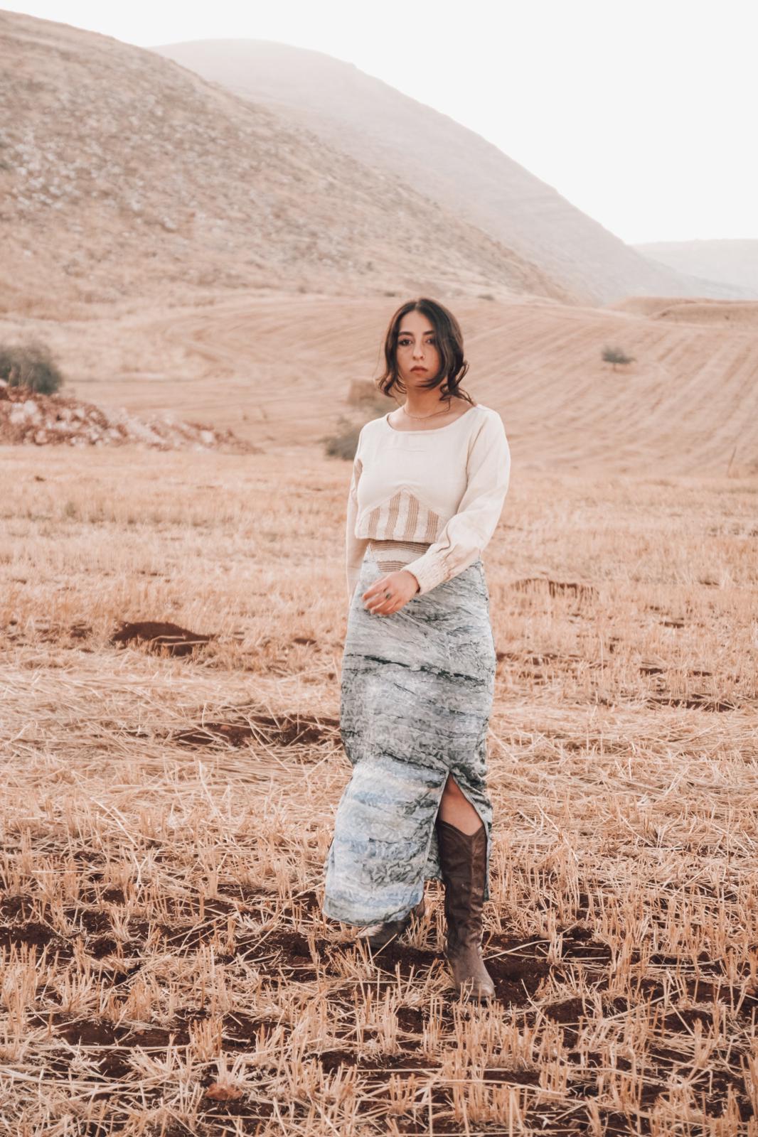 חצאית סאטן תכולה סגולה, מבד טאי דאי מעוטר, חיתוך וי ארוג במותן, 2 שסעים בצדדים וריצ' רץ' מאחורה. (המידות גדולות יחסית, מומלץ להזמין מידה פחות) (קולקציית עומר).